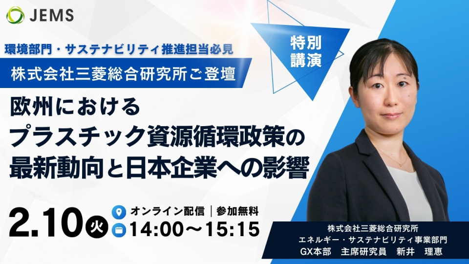 【2/10開催】無料オンラインセミナー「欧州におけるプラスチック資源循環政策の最新動向と日本企業への影響」開催のお知らせ