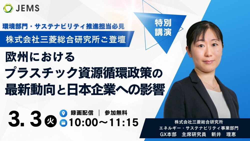 【3/3開催】無料オンラインセミナー「欧州におけるプラスチック資源循環政策の最新動向と日本企業への影響」開催のお知らせ ※録画配信