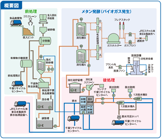 (株)JFE環境は千葉市内にある臨海部地域において、“レストランやコンビニ等、食品関連事業者からの食品廃棄物が多く発生”、“バイオガスの利用先として製鉄所が隣接”という地域特性を活かし、食品廃棄物を活用したバイオガスシステムを供給する事業を運用しております。