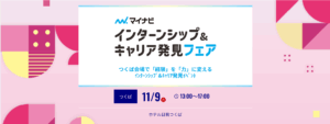 2025年11月9日(日)にマイナビ主催の「インターンシップ&キャリア発見フェア」がつくば市のホテル日航つくばにて開催されます。