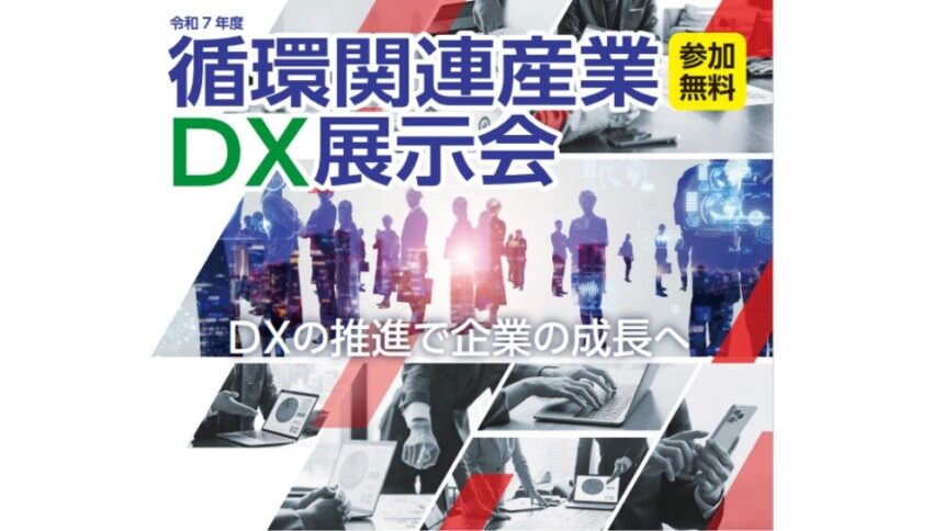 循環関連産業のDX推進を図ることを目的として、循環関連産業に携わる事業者(産業廃棄物排出事業者、産業廃棄物処理業者、リサイクラー等)がICTツールに触れ、かつ情報収集や事業者間の繋がりの機会を得られるよう、「令和7年度循環関連産業DX展示会」を開催