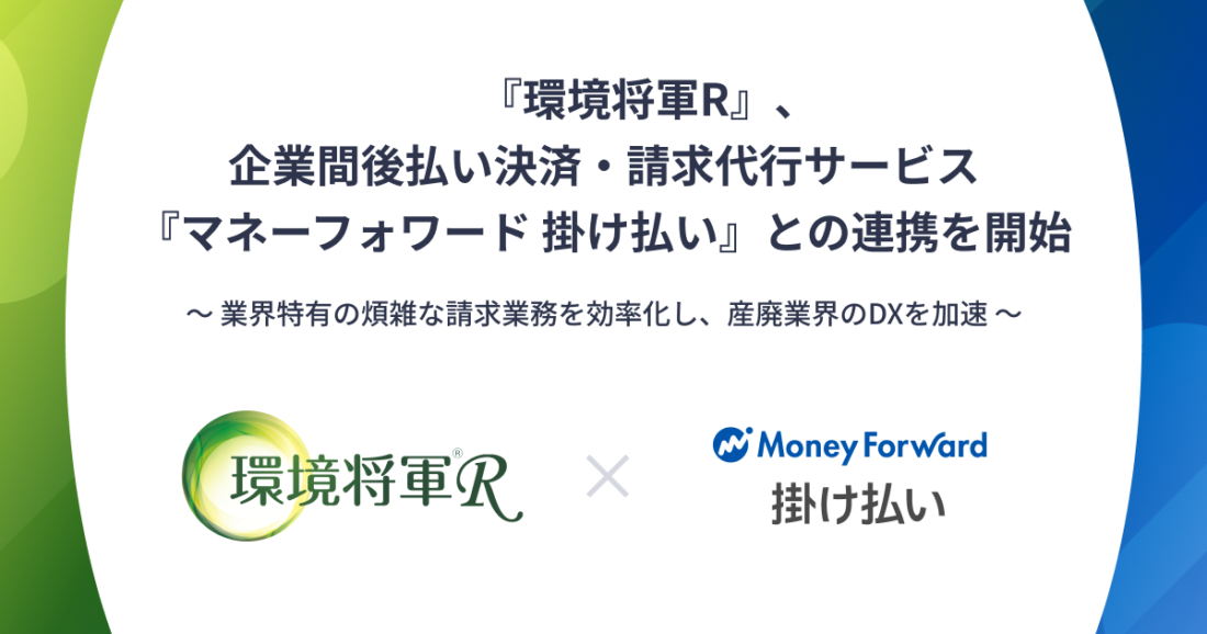 『環境将軍R』、企業間後払い決済・請求代行サービス『マネーフォワード 掛け払い』との連携を開始 ~業界特有の煩雑な請求業務を効率化し、産廃業界のDXを加速〜