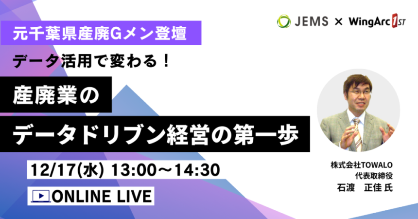 本セミナーでは、千葉県庁で産廃Gメンとして活躍されていた石渡正佳氏をお招きし、経営の課題に対して、現場と経営両方の視点で可視化し評価する方法、そしてその効果について説明します。
